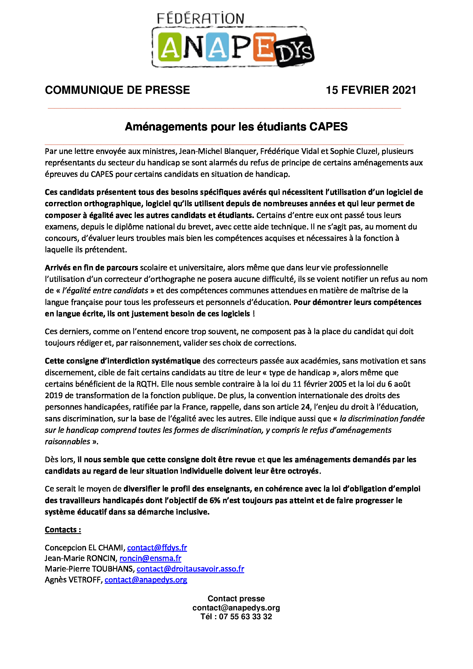 la Fédération Anapedys