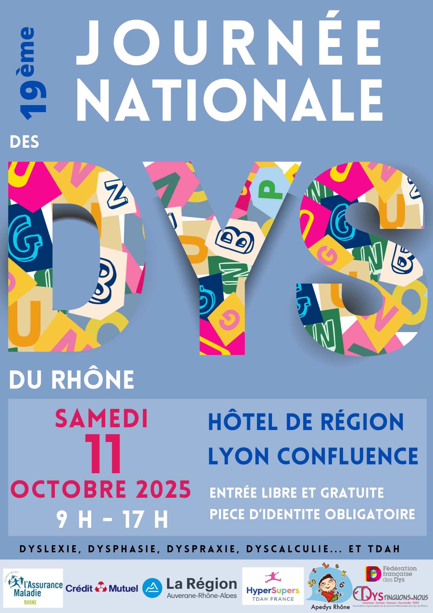 Nous serons présents à la Journée Nationale des DYS le 11 octobre 2025 à Lyon.